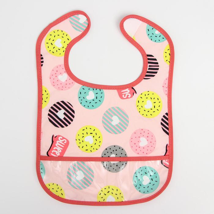 Нагрудник для кормления Крошка Я «Пончики» непромокаемый на липучке, с карманом