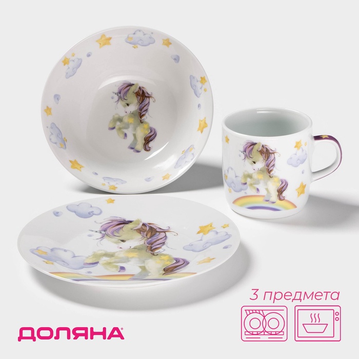 Набор детской посуды Доляна «Котёнок», 3 предмета: кружка 200 мл, салатник 450 мл, тарелка d=20 см