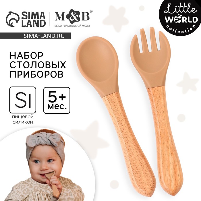 Набор детский столовых приборов, вилка и ложка M&B (силикон, бамбук), бежевый