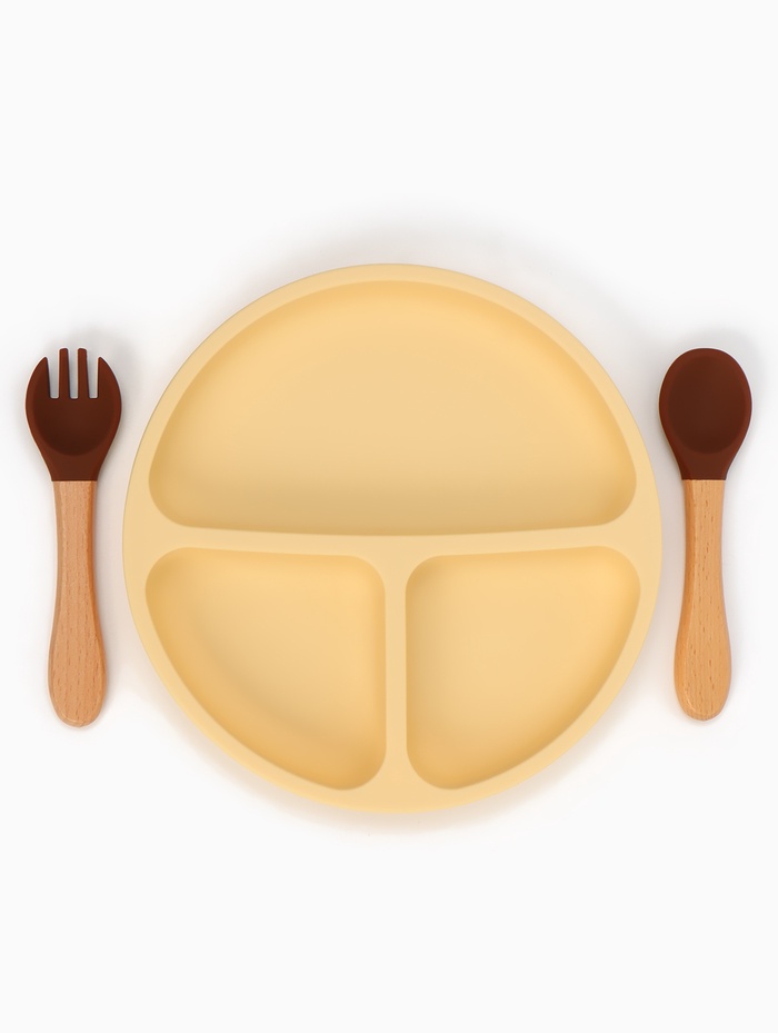 Тарелка детская секционная с ложкой и вилкой, 3 секции, молочный, Mum&Baby