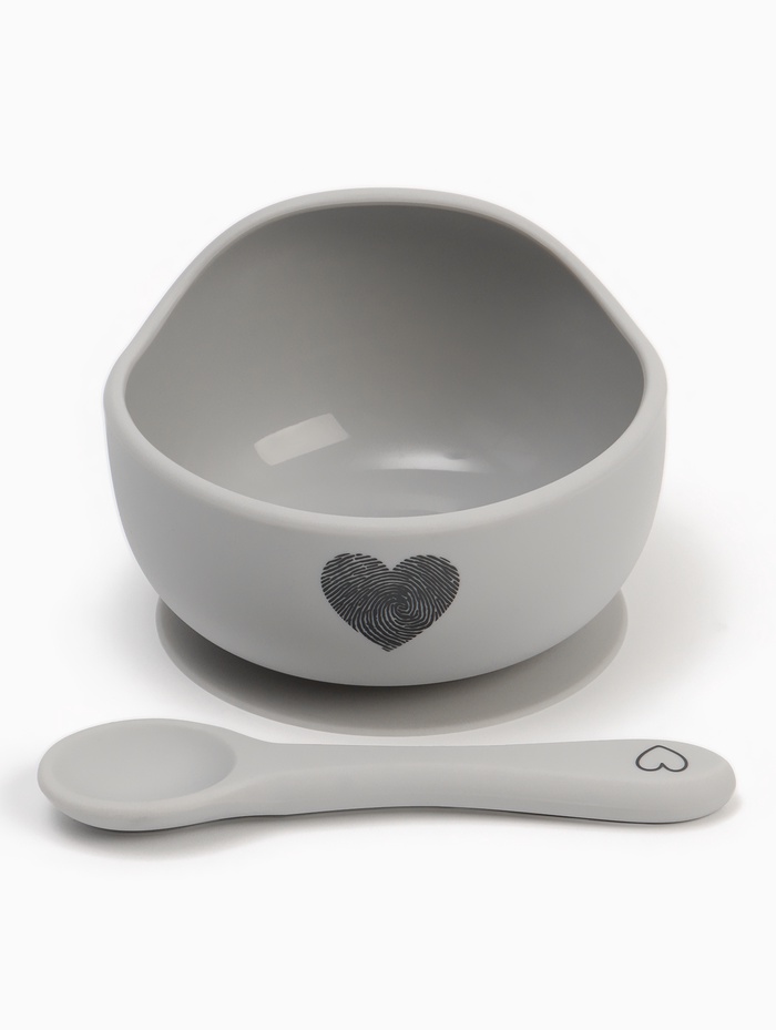 Тарелка детская на присоске и ложка, серый, Mum&Baby