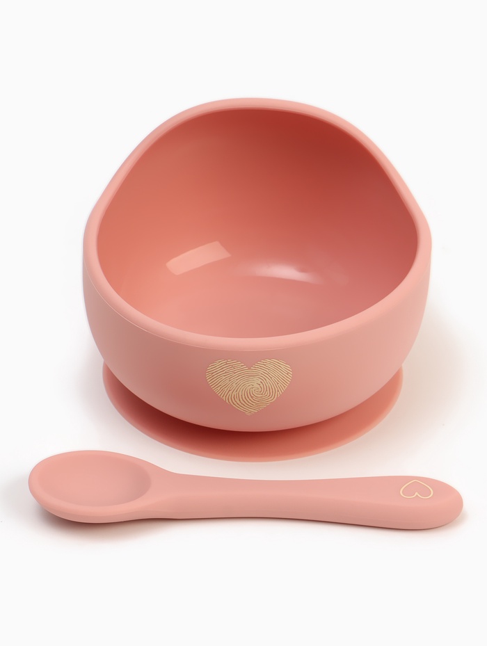 Тарелка детская на присоске и ложка, розовый, Mum&Baby