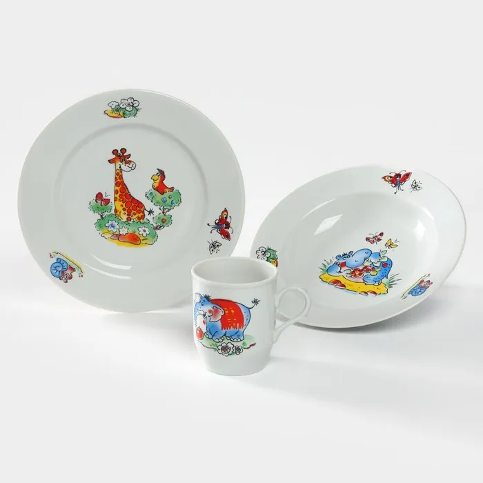 Набор посуды фарфоровой «Зоопарк», 3 предмета: тарелка d=20 см, салатник d=19,8 см, кружка 200 мл