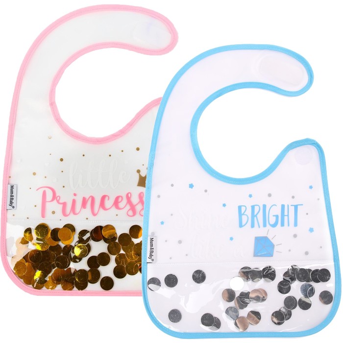 Нагрудник для кормления M&B «Little» непромокаемый на липучке, внутри с конфетти, виды МИКС