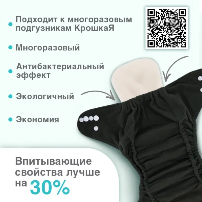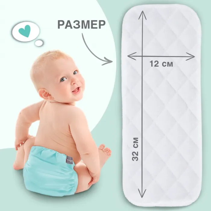 Вкладыши в многоразовый подгузник, 3-х слойный, 30 см, 5 шт., хлопок, Крошка Я
