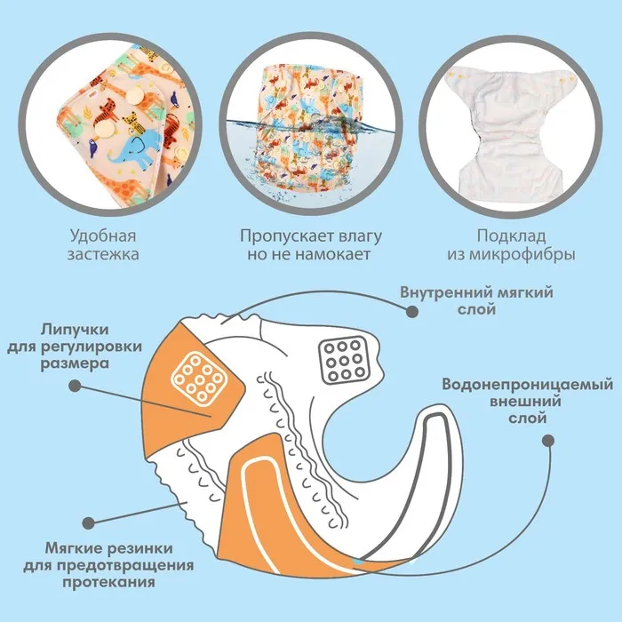 Многоразовый подгузник «Африка», 3-15 кг, бежевый, Крошка Я