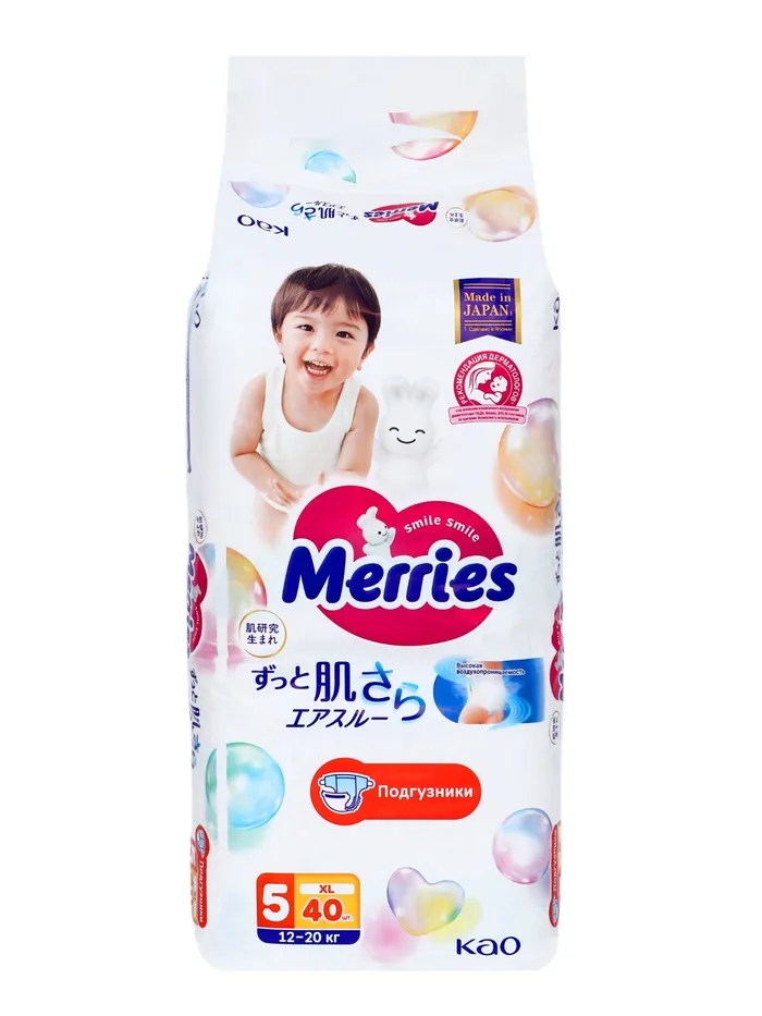 Подгузники Merries XL (12-20 кг), 44 шт.