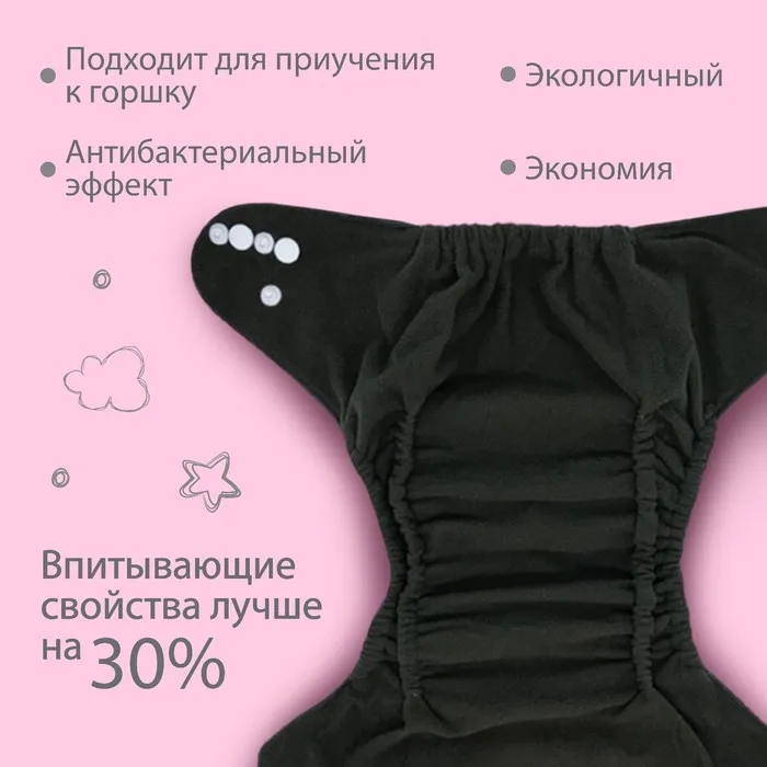Многоразовый подгузник Крошка Я «Фламинго», 3-15 кг, угольно-бамбуковая ткань, серый