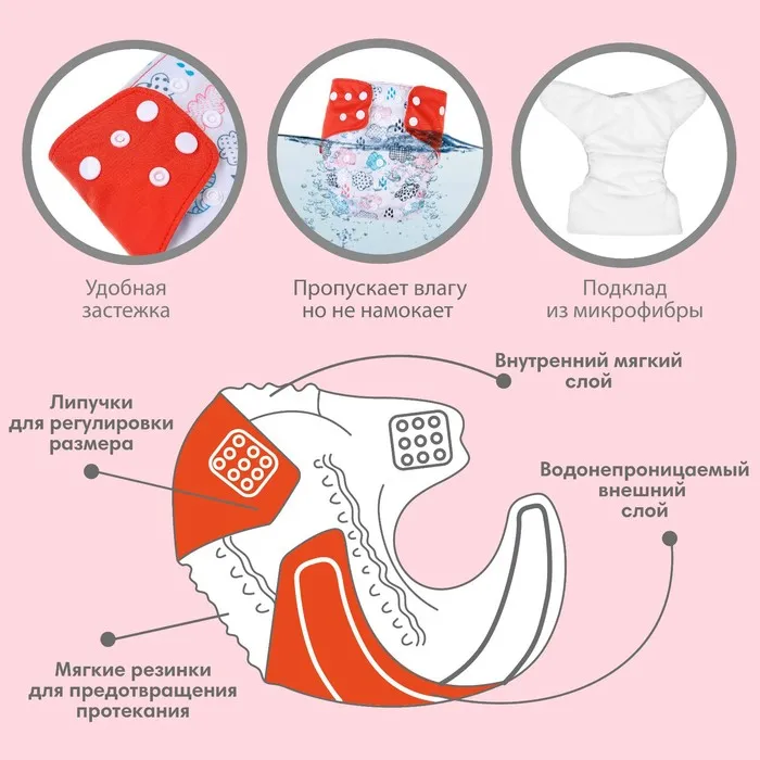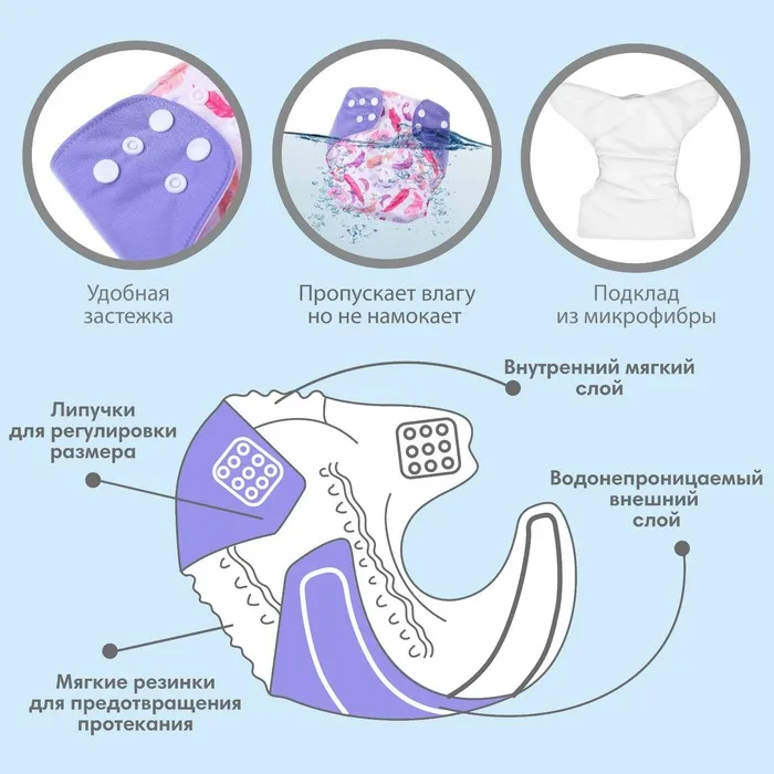 Многоразовый подгузник «Перья», 3-15 кг, разноцветный, Крошка Я
