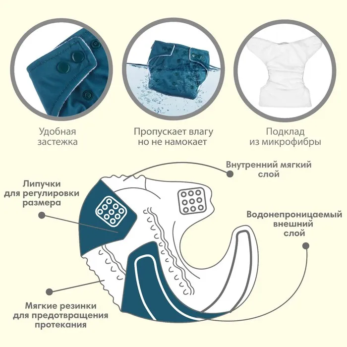 Многоразовый подгузник Крошка Я, 3-15 кг, угольно-бамбуковая ткань, зеленый