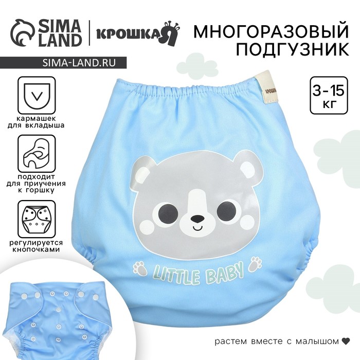 Многоразовый подгузник Крошка Я «Little baby», 3-15 кг, голубой