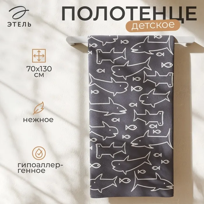 Полотенце махровое "Этель" Акулы, 70х130 см, 100% хлопок, 420гр/м2