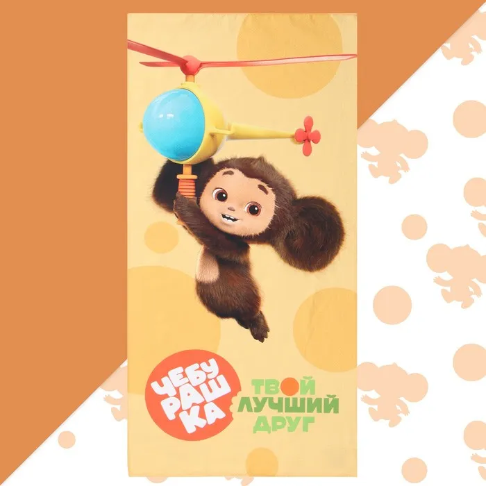 Полотенце Чебурашка, жёлтое, 70×140 см, 100% хл, вафля 160 г/м²