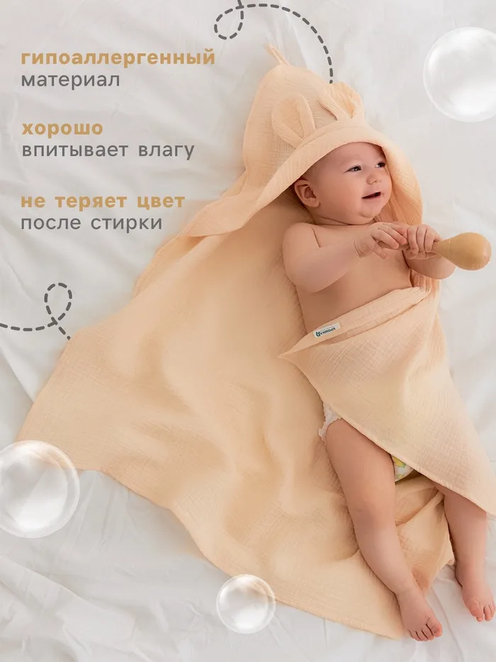 Полотенце - уголок муслиновое Крошка Я, 75×75 см, 100% хлопок, 120 г/м², сливочное