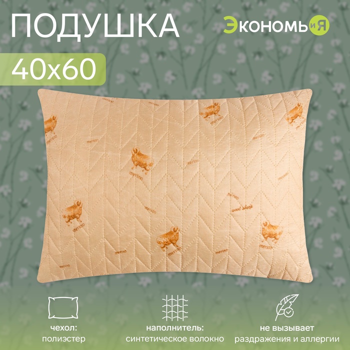 Подушка "Экономь и Я" 40х60 см, спандбонд, 100% п/э