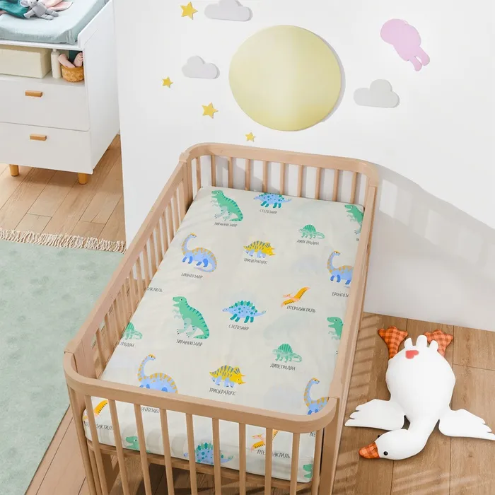 Простыня на резинке "Крошка Я" Динозаврики 60*120+20 см, бязь 125 г/м2, хл 100%