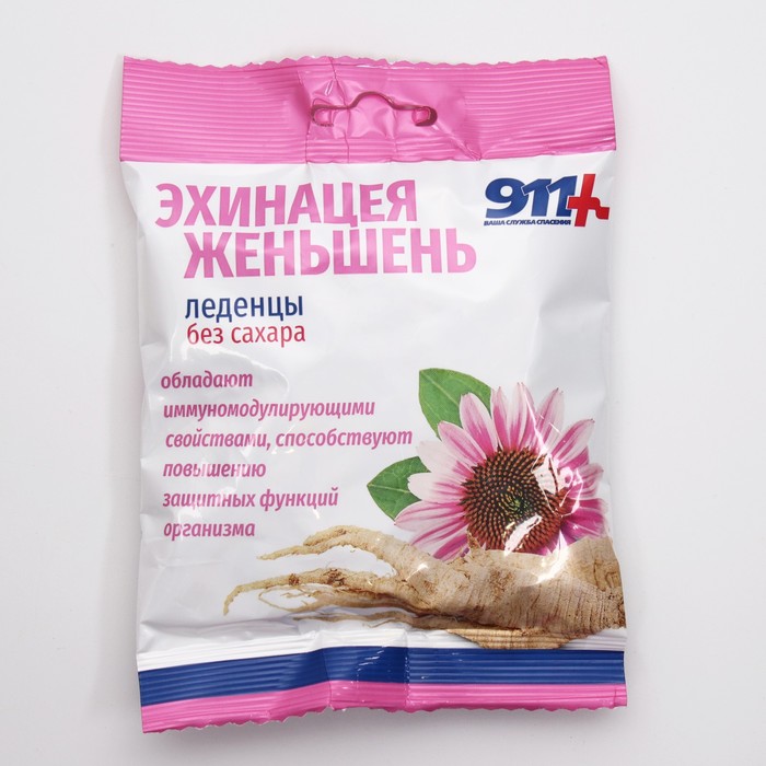 Леденцы "911" без сахара, эхинацея, женьшень, витамин С, 50 г