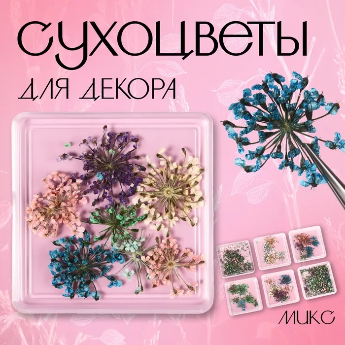 Сухоцветы для декора, 12 видов, в футляре, разноцветные