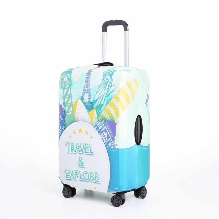 Чехол на чемодан на колёсах, 28" (L), с принтом, чёрный