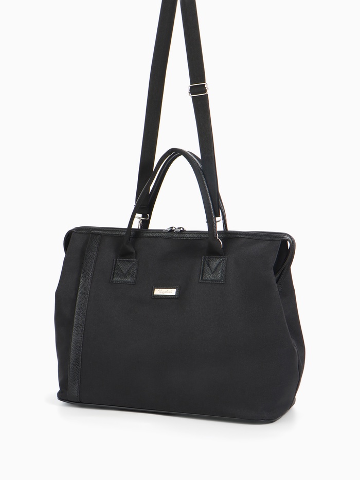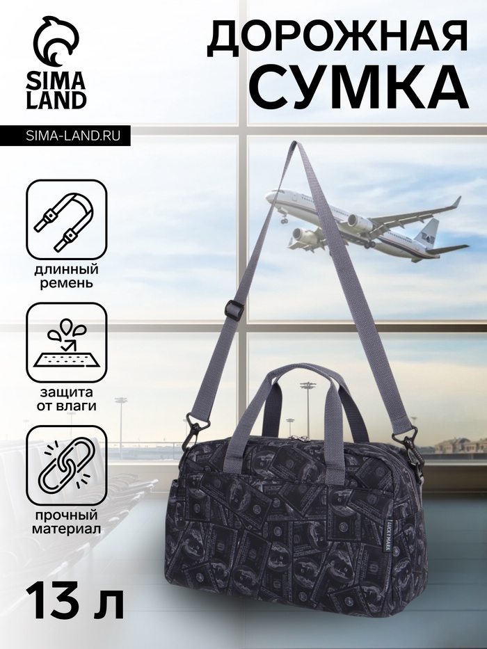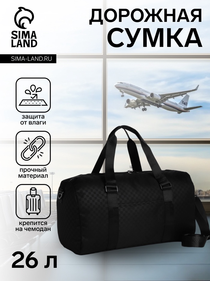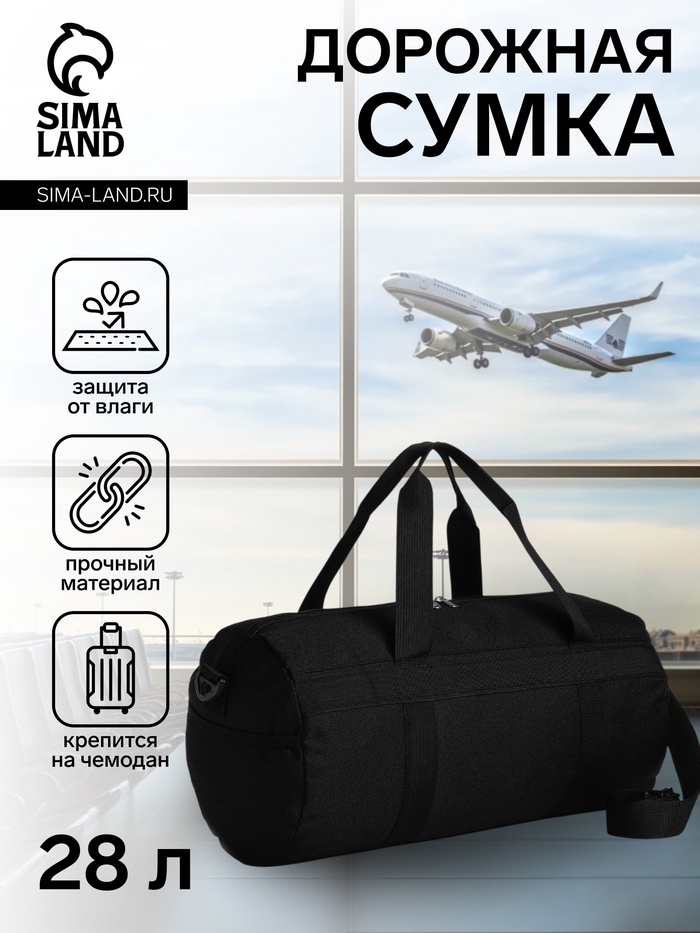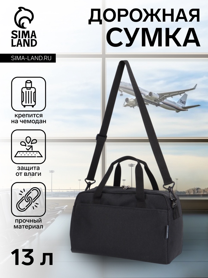 Сумка дорожная на молнии, наружный карман, держатель для чемодана, длинный ремень, чёрная