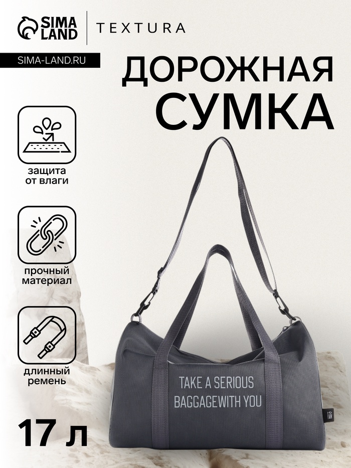 Сумка дорожная на молнии TEXTURA, маленький размер, серая
