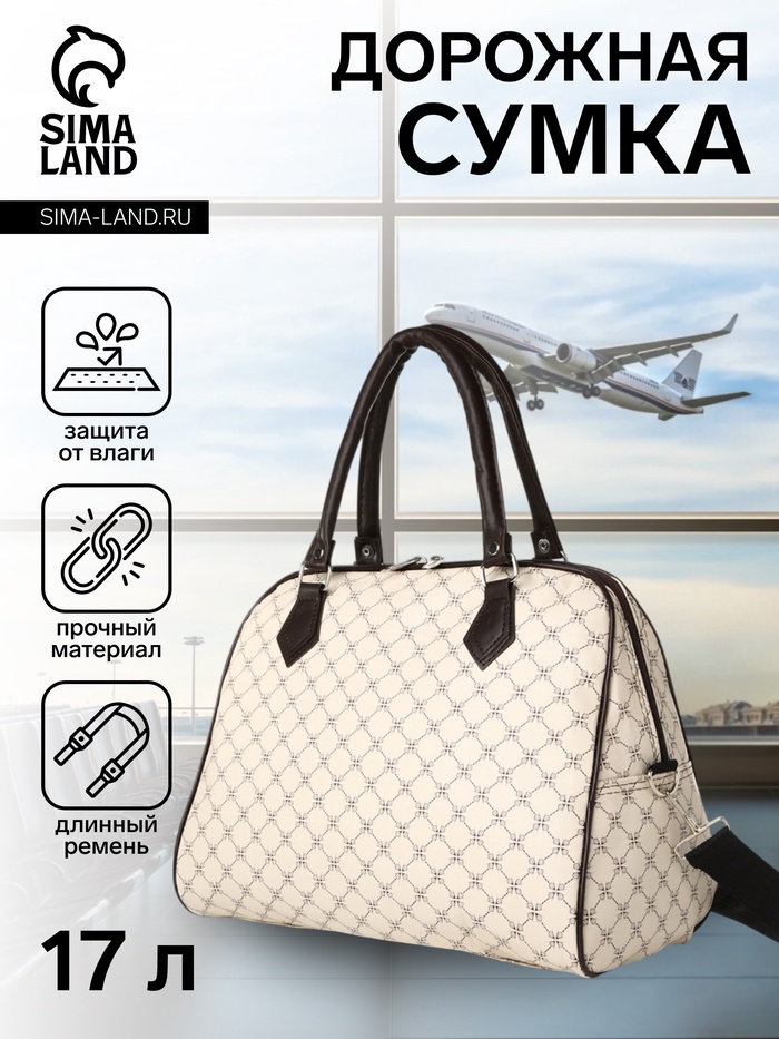 Сумка дорожная на молнии, наружный карман, держатель для чемодана, длинный ремень, цвет бежевый/разноцветный