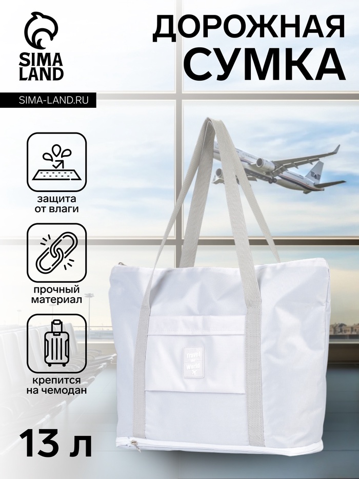 Сумка дорожная на молнии, с увеличением, наружный карман, держатель для чемодана, длинный ремень, серая