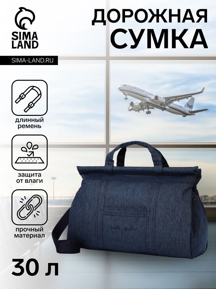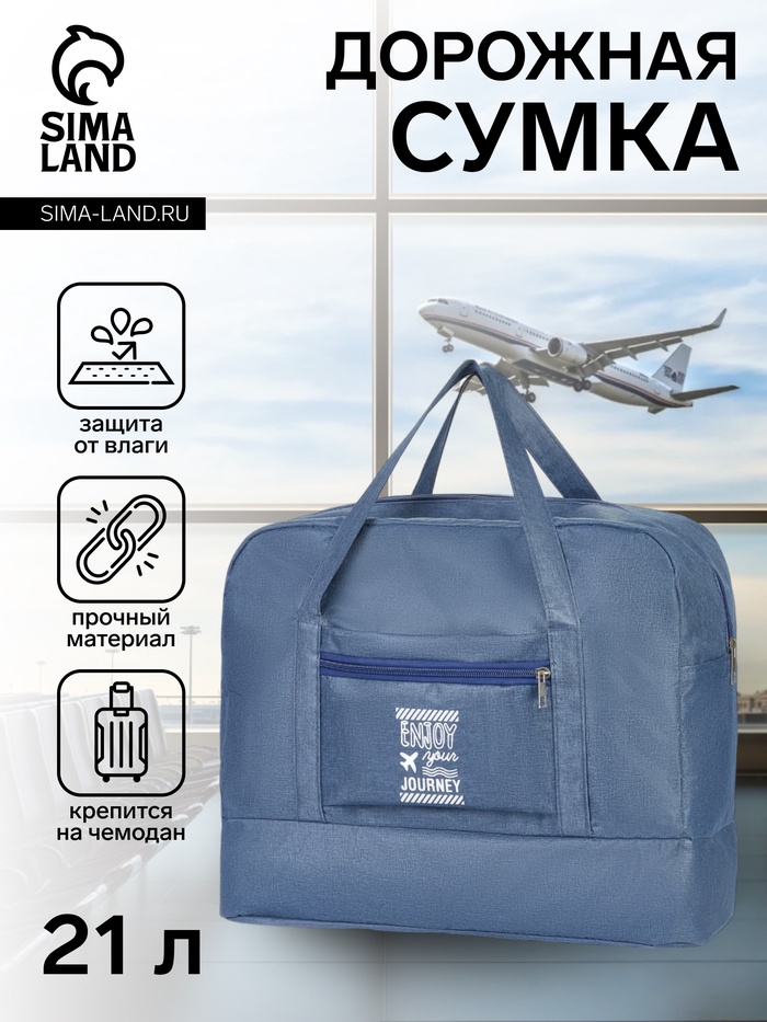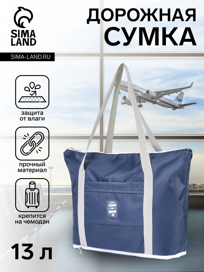 Сумка дорожная на молнии, с увеличением, наружный карман, держатель для чемодана, длинный ремень, синяя