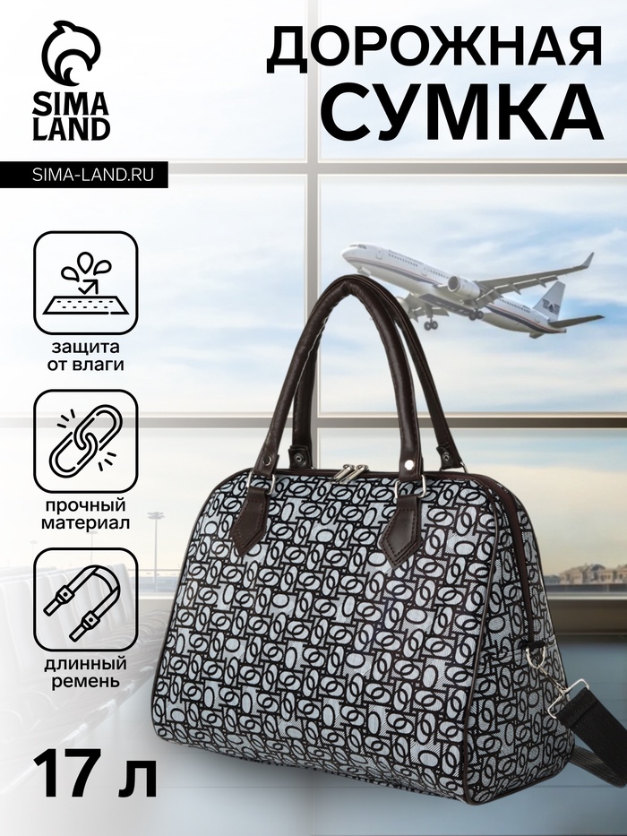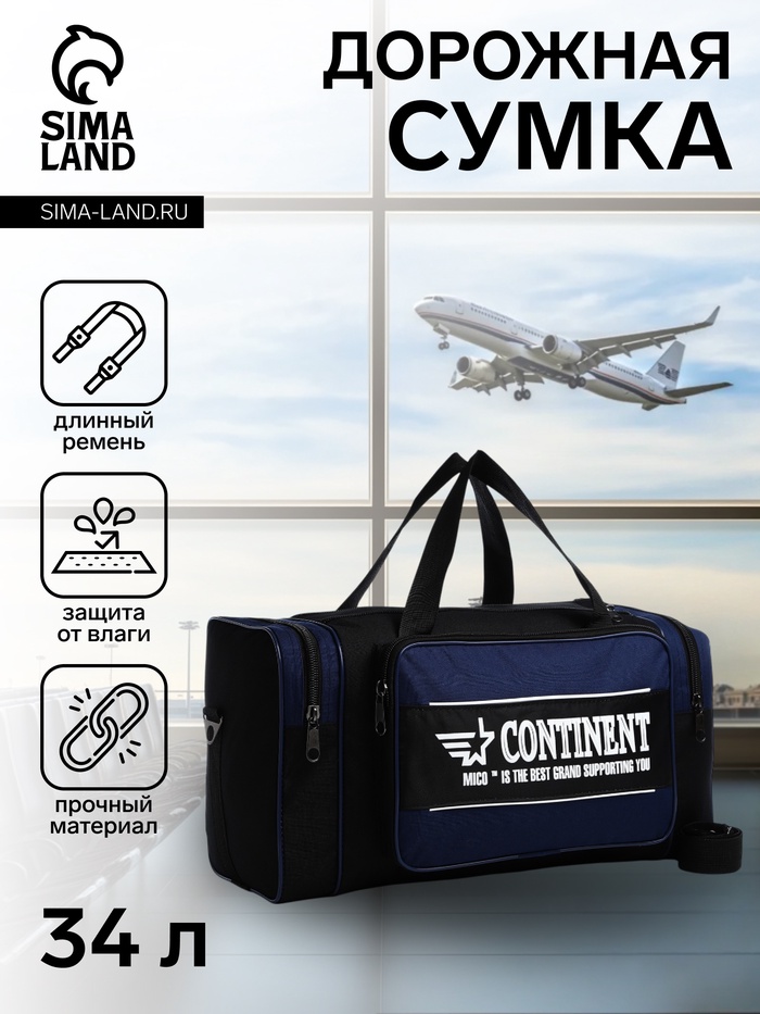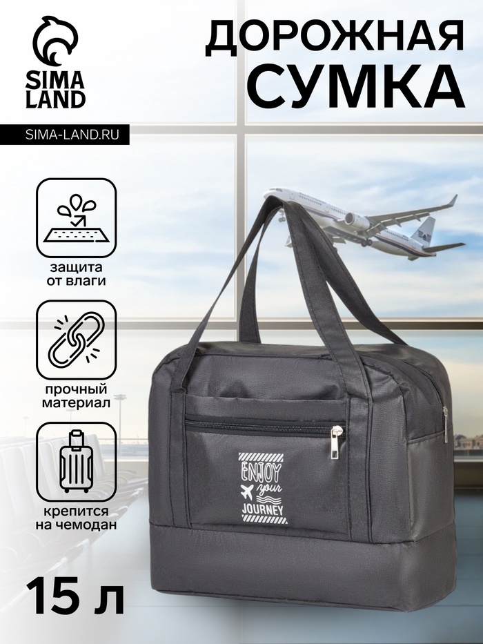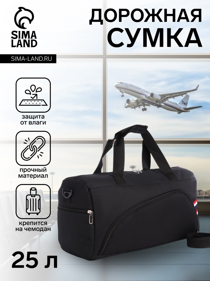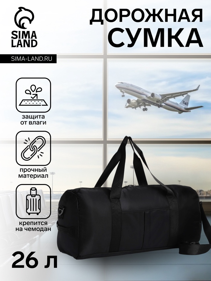 Сумка дорожная на молнии, 3 наружных кармана, держатель для чемодана, длинный ремень, чёрная