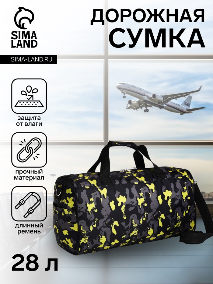 Сумка дорожная на молнии, наружный карман, длинный ремень, жёлтая, чёрная