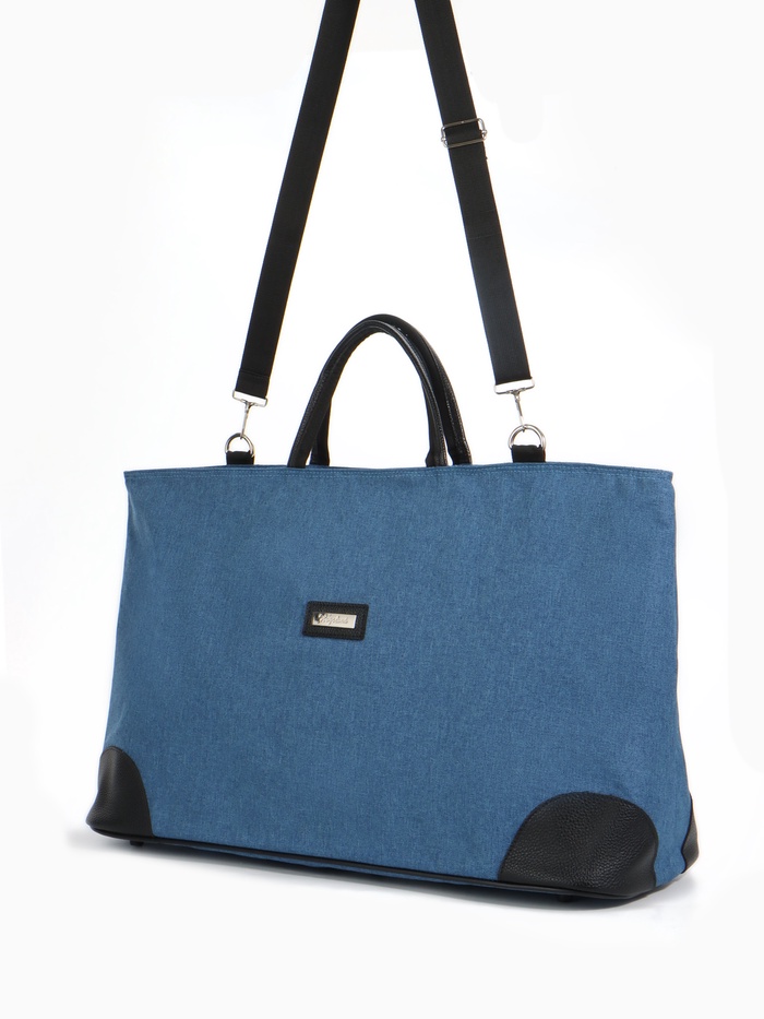 Сумка дорожная на молнии, с увеличением, наружный карман, держатель для чемодана, длинный ремень, голубая