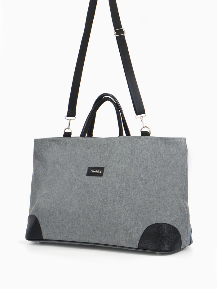 Сумка дорожная на молнии, отдел для обуви, наружный карман, держатель для чемодана, длинный ремень, чёрная