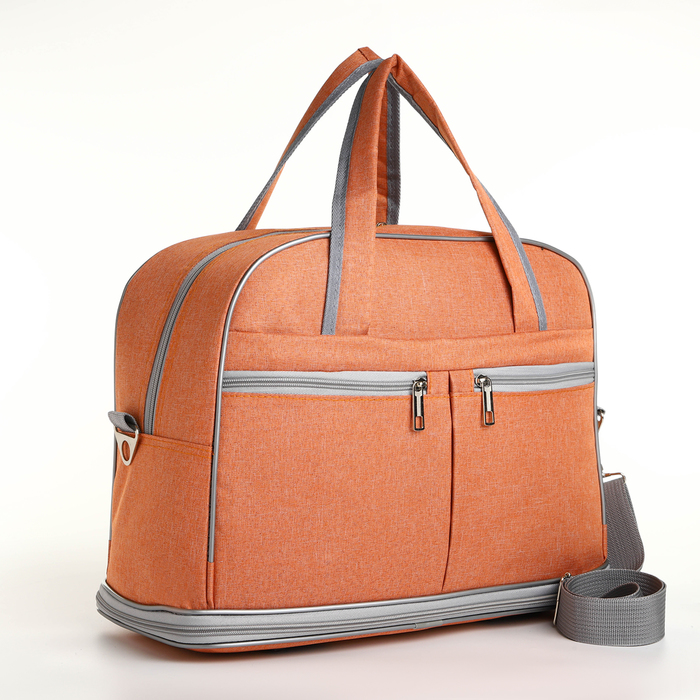 Сумка дорожная женская на молнии, с увеличением, 3 наружных кармана, длинный ремень, цвет оранжевый