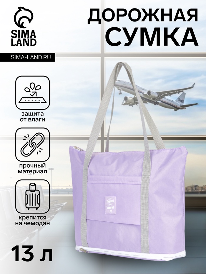 Сумка дорожная на молнии, с увеличением, наружный карман, держатель для чемодана, длинный ремень, сиреневая