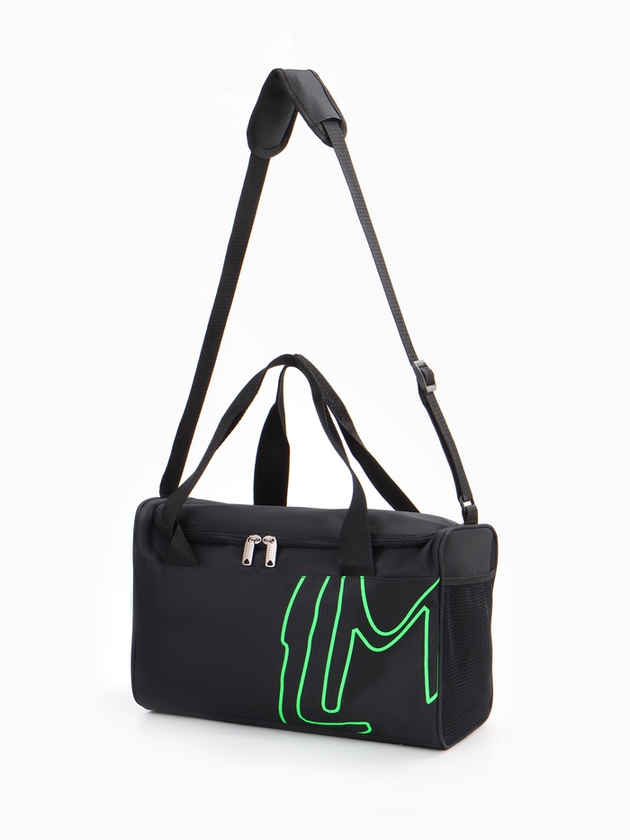 Сумка дорожная на молнии, держатель для чемодана, длинный ремень, цвет чёрный/зелёный