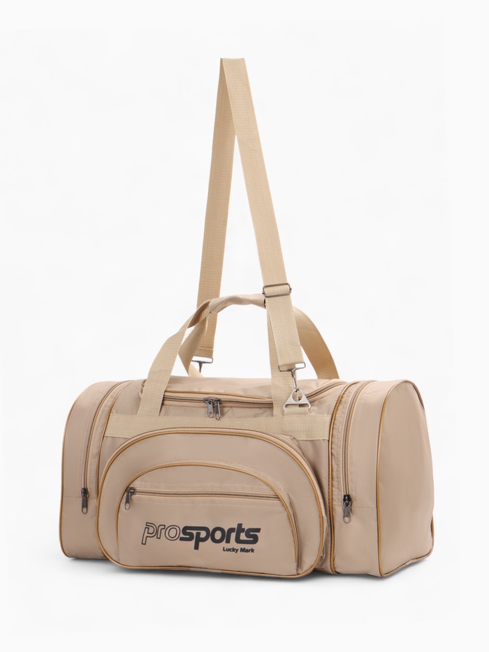 Сумка дорожная Lucky Mark на молнии, 4 наружных кармана, длинный ремень, бежевый