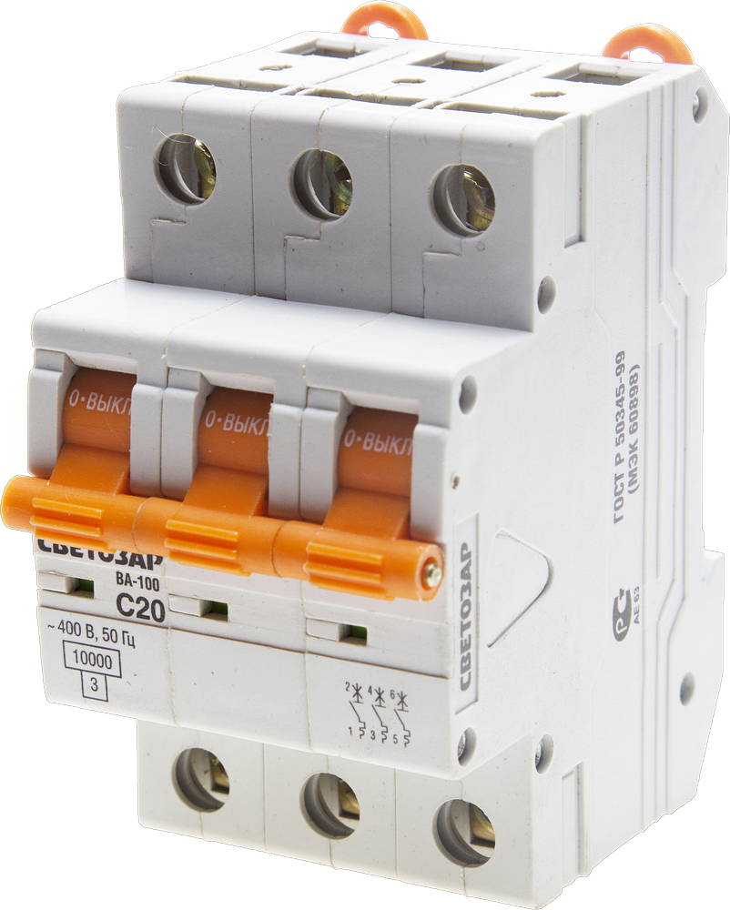 СВЕТОЗАР ВА-100, 3P, 20А, C, 10кА, автоматический выключатель (SV-49073-20-C)