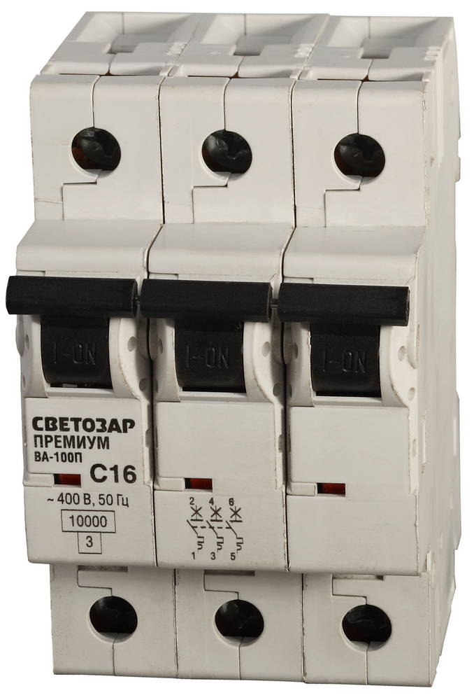 СВЕТОЗАР ВА-100П, 3P, 16А, C, 10кА, автоматический выключатель, Премиум (SV-49033-16-C)