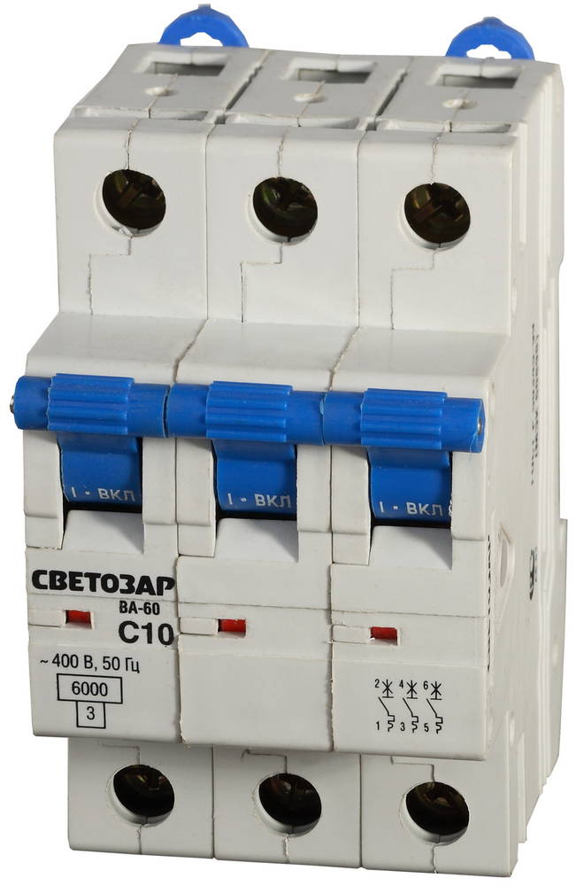 СВЕТОЗАР ВА-60П, 3P, 10А, C, 6кА, автоматический выключатель, Премиум (SV-49023-10-C)