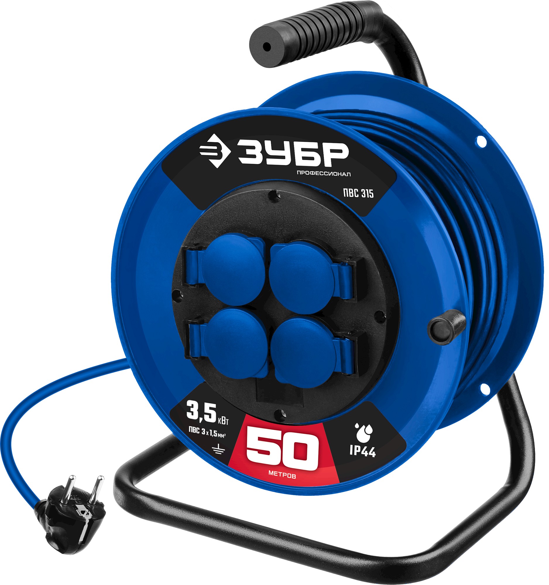 ЗУБР ПВС 315, ПВС, 3 x 1.5 мм2, 50 м, 3500 Вт, IP44, силовой удлинитель на катушке, Профессионал (55081-50)