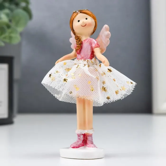 Сувенир полистоун "Ангел-малышка с косой, в белой юбочке со звёздами" розовый 10х3х5 см