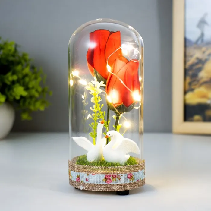 Фигурка световая в колбе RISALUX «Два лебедя», LED-ночник, от батареек LR44, 8×8×19 см