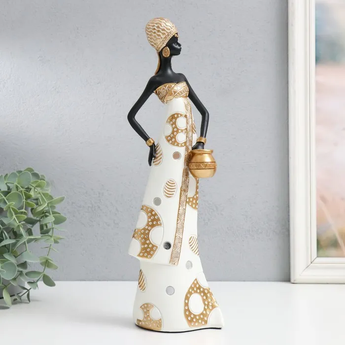 Фигурка полистоун «Африка: Королева пустыни, с горшочком», бело-золотой, 10×7×32.5 см