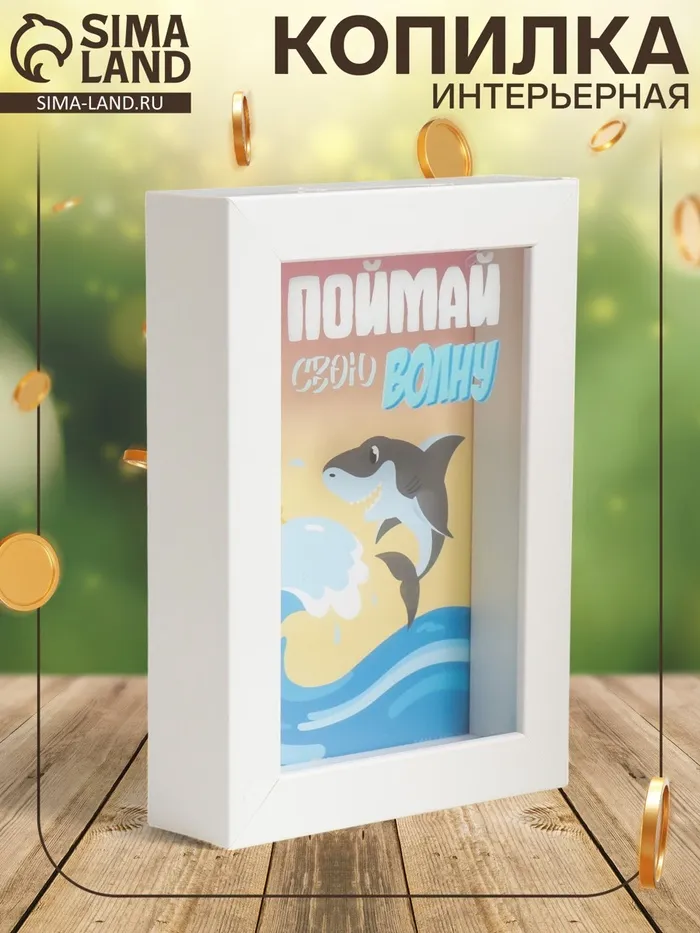 Интерьерная копилка для купюр и монет «Акула. Поймай свою волну», пластик, 17×12×3.8 см