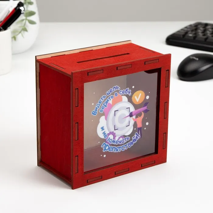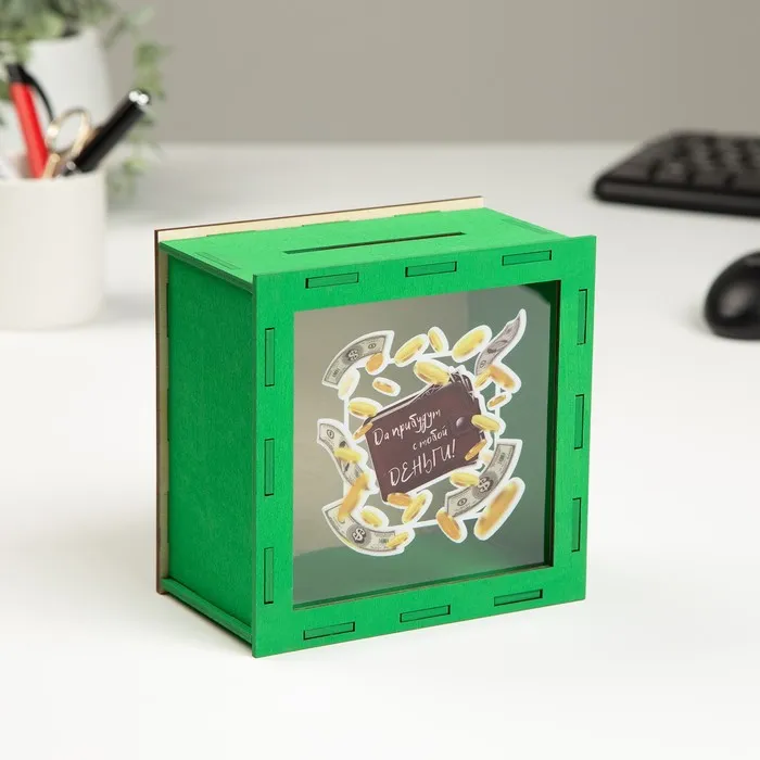 Деревянная копилка для денег «Сюрприз», для купюр, монет, 14×14×8 см