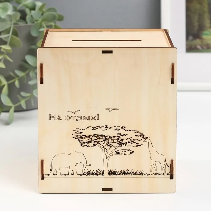 Деревянная копилка для денег «На отдых», заготовка, для купюр, монет, 13.4×10×15 см, набор 6 деталей