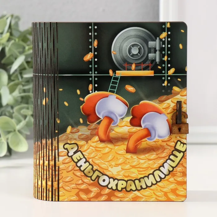 Деревянная книга-копилка для денег «Деньгохранилище», для купюр, монет, 14×12×5 см