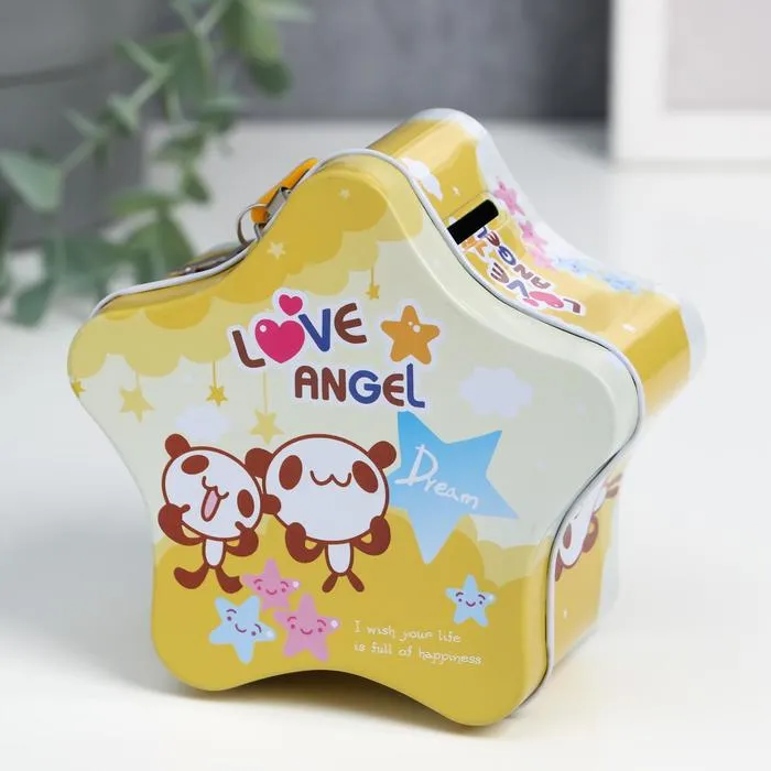Копилка для денег с замком и ключом «Звёздочка со зверьком», металл, 12×12×5.5 см, МИКС