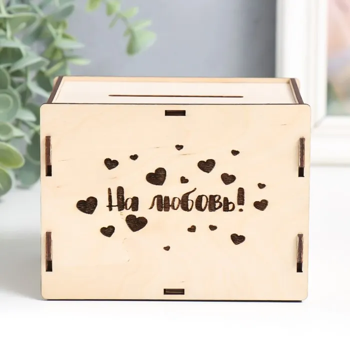 Деревянная копилка для денег «На любовь», заготовка для творчества, 13.4×10×10 см, набор 6 деталей, МИКС