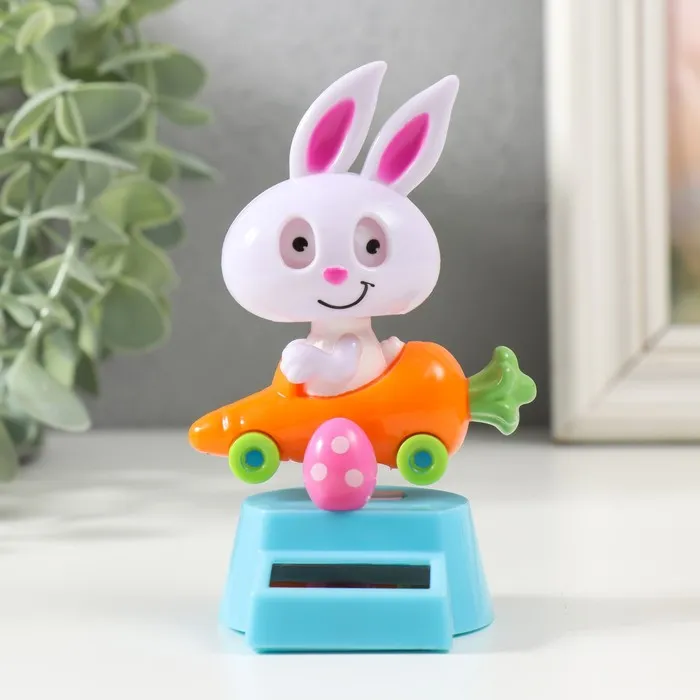 Маятник пластик от солнечной батареи "Белый зайчик в машинке-морковке" 5,8х6,5х10,5 см